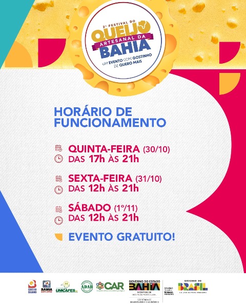 O festival contará com 40 expositores, além de espaço de vinhos, música ao vivo e uma programação técnica que celebra a cultura alimentar baiana, reforçando o vínculo entre o campo e a cidade. O festival busca aproximar consumidores dos produtores, criar novas oportunidades comerciais e destacar o queijo artesanal como um produto identitário, econômico e cultural do estado.