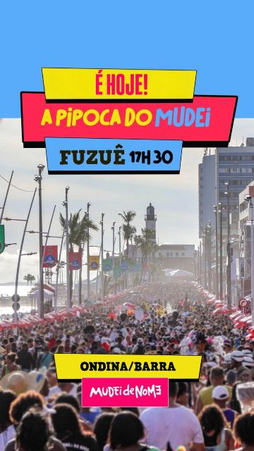É hoje que o Movimento Musical MUDEIdeNOME volta a ocupar o asfalto e a história do Carnaval de Salvador. Neste domingo, 8 de fevereiro, a partir das 18h, o grupo é o responsável por encerrar o FUZUÊ 2026, levando a tradicional Pipoca do MUDEI para o Circuito Ondina–Barra, logo após o término oficial da programação.