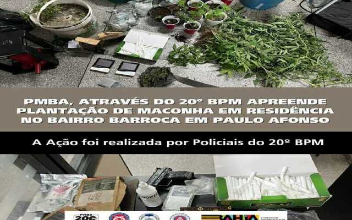Durante a averiguação, os policiais visualizaram plantações de maconha no interior do imóvel. Diante disso, adentraram o local e constataram uma quantidade ainda maior de plantas, dispostas em vasos e acompanhadas de adubos, telas de proteção solar, prensas e outros materiais típicos de um ambiente voltado ao cultivo e beneficiamento da droga, configurando uma espécie de laboratório.