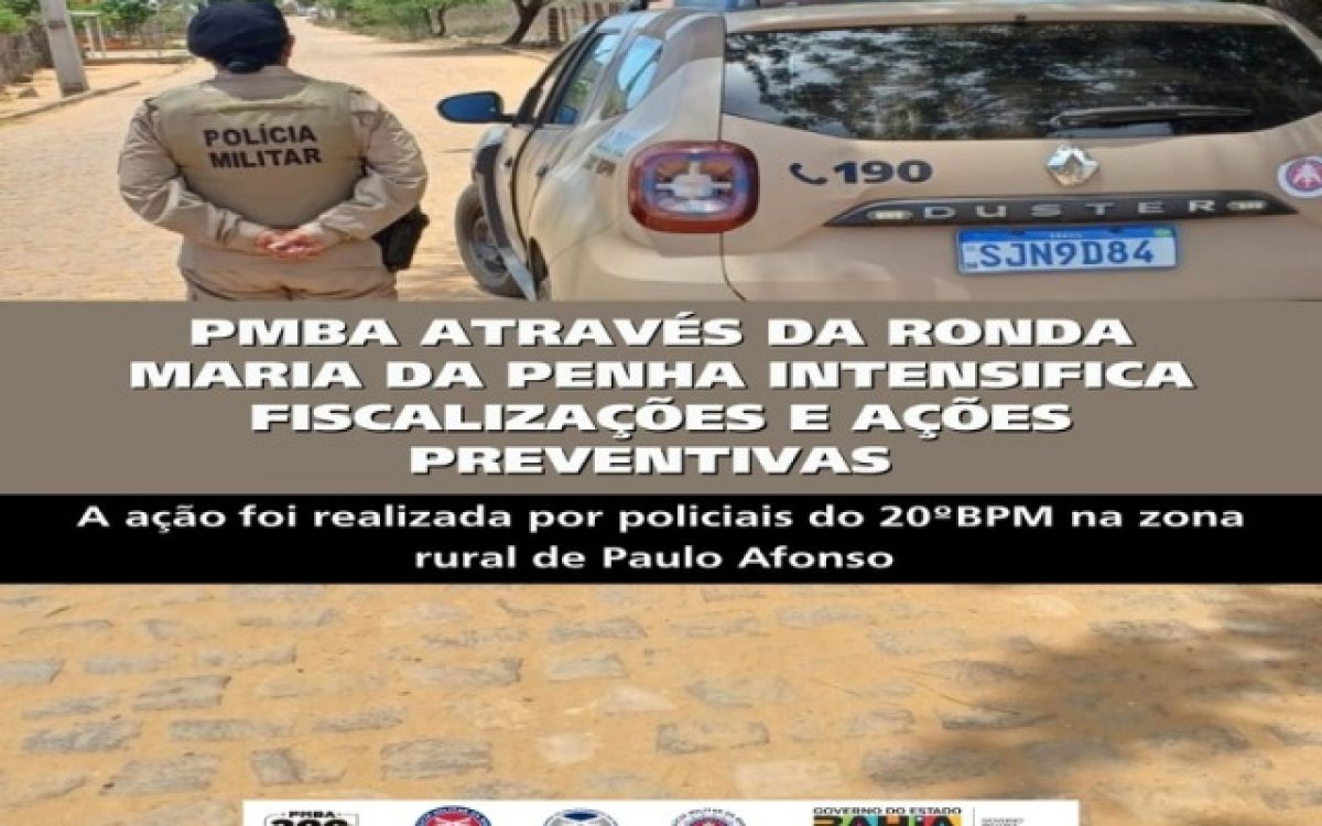 Na manhã desta quarta-feira (08/10), o 20º Batalhão de Polícia Militar, por meio da Operação Ronda Maria da Penha e com o apoio do CPR-Nordeste, realizou fiscalizações de medidas protetivas de urgência expedidas pelo Poder Judiciário, nas comunidades rurais de Campos Novos, Matinha, Cascavel, São José, Arrasta-Pé, Barriga e Bonamão, em Paulo Afonso.