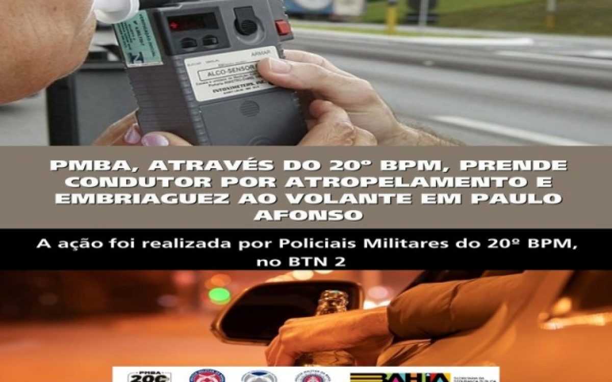 POLICIA MILITAR PRENDE CONDUTOR POR ATROPELAMENTO E EMBRIAGUEZ AO VOLANTE EM PAULO AFONSO