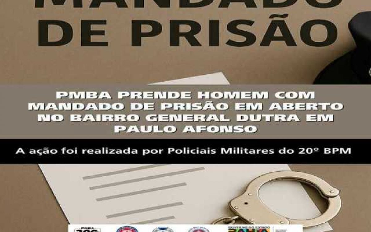 No sábado (8), por volta das 10h15, policiais militares do 20º Batalhão de Polícia Militar receberam informações de que um homem com mandado de prisão em aberto encontrava-se no Bairro General Dutra, em Paulo Afonso.