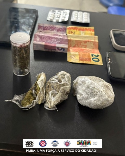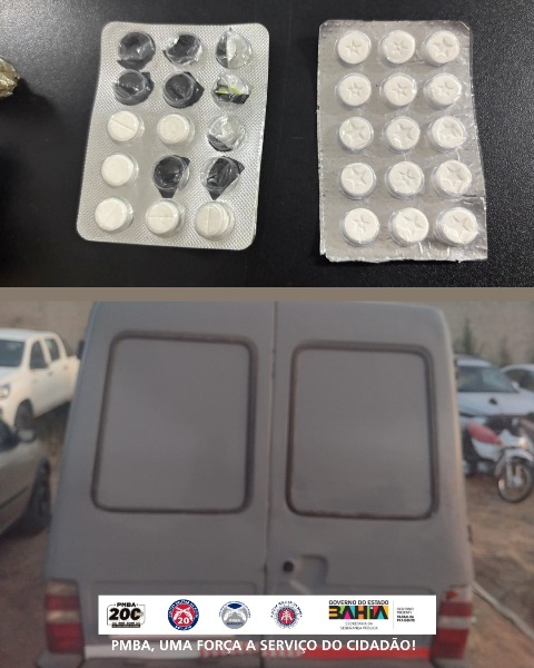 Durante as abordagens, a guarnição interceptou um veículo Fiat Fiorino, cor cinza, onde foram encontradas porções de substância análoga à maconha e comprimidos de uso proibido na condução de veículos. O veículo apresentava ainda irregularidades de identificação.