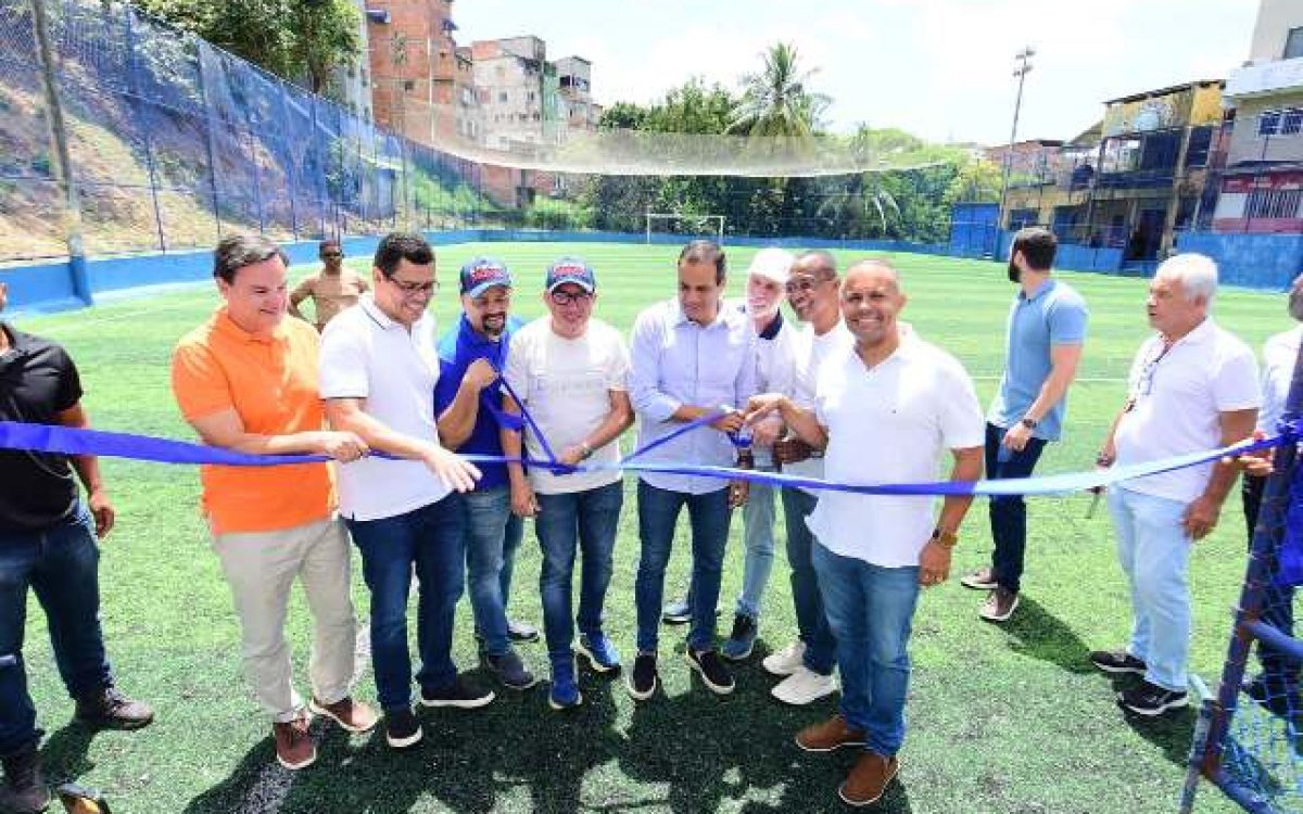 A Prefeitura inaugurou mais um equipamento esportivo com grama sintética em Salvador beneficiando, desta vez, moradores do bairro de São Rafael. O prefeito Bruno Reis e o titular da Secretaria de Promoção Social, Combate à Pobreza, Esporte e Lazer (Sempre), Júnior Magalhães, entregaram nesta sexta-feira (31) a nova Arena Recanto, localizada na entrada do Conjunto Recanto das Ilhas, oferecendo mais infraestrutura para ampliar o acesso à prática esportiva na região.