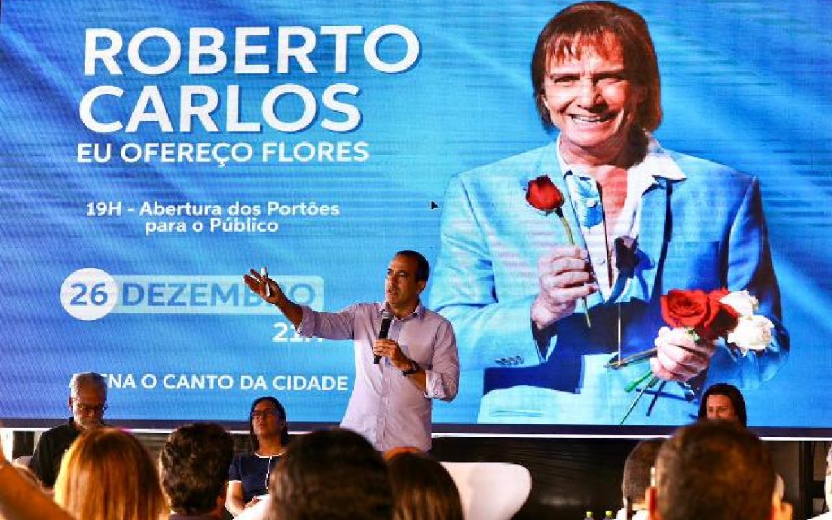 A programação de eventos de fim de ano da Prefeitura, na Arena O Canto da Cidade, começa no dia 25, com a realização do Natal do Salvador. A primeira apresentação é a do Padre Jaciel Bezerra, às 16h. Em seguida, será celebrada a Santa Missa, com Dom Gilvan Pereira, bispo auxiliar da Arquidiocese de Salvador. O ponto alto do dia será o show de Frei Gilson, às 19h. No dia 26, a Arena estará aberta ao público a partir das 19h para o show do cantor Roberto Carlos, que sobe ao palco a partir das 21h.
