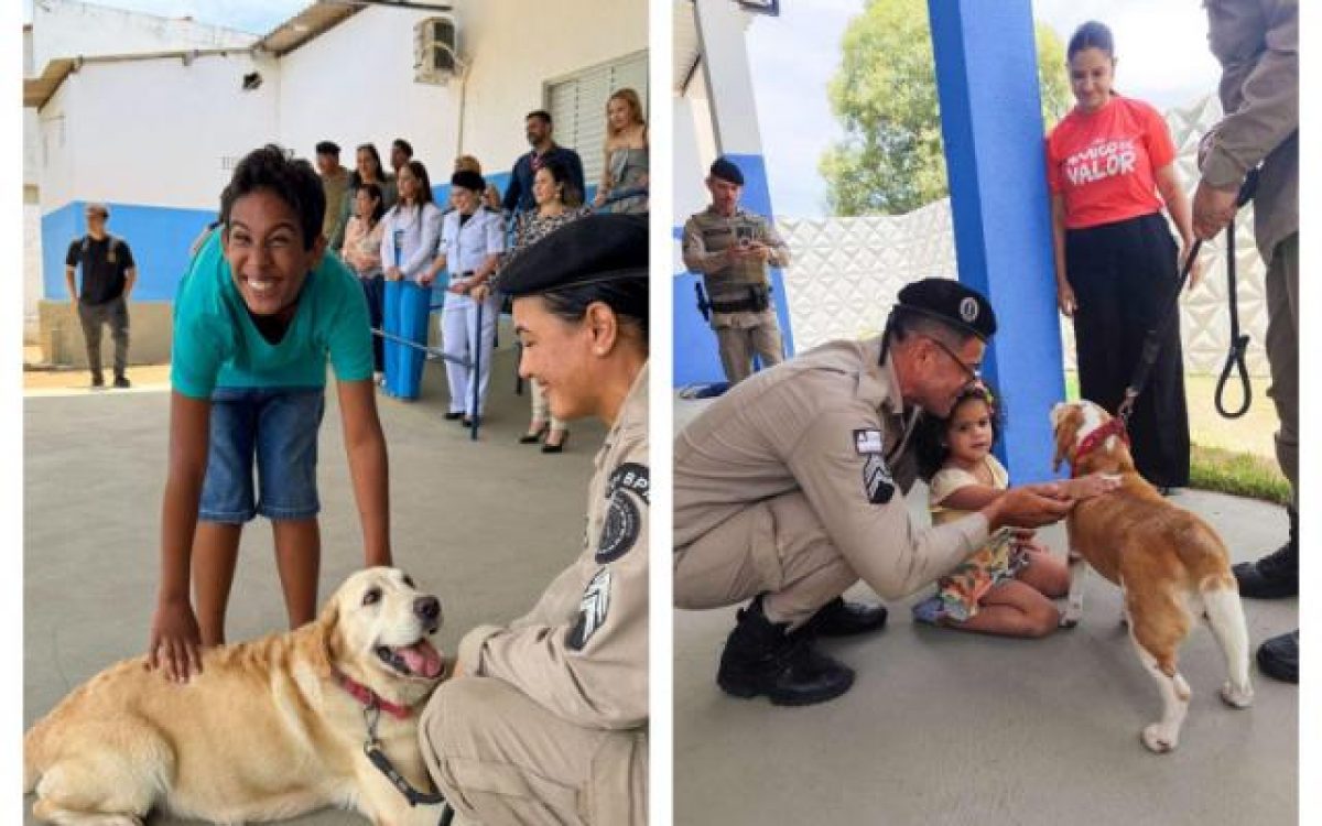 Durante os atendimentos, são desenvolvidas ações que estimulam a empatia, o autocontrole, a comunicação e a autoconfiança, sempre com o acompanhamento de profissionais capacitados e condutores da Polícia Militar que integram o programa de Cinoterapia.
