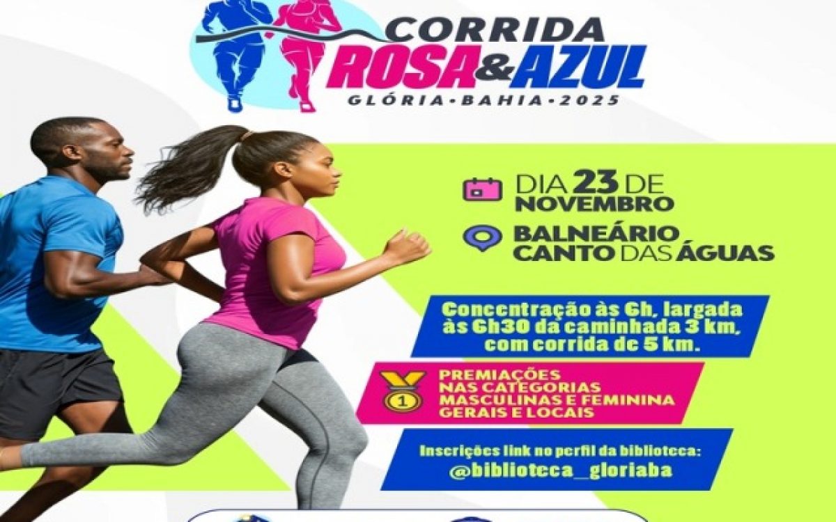 A Prefeitura Municipal de Glória, por meio da Secretaria Municipal de Governo e da Biblioteca Pública Municipal, realizará a Corrida Rosa & Azul 2025, um evento que une esporte, saúde e conscientização em uma manhã especial no Balneário Canto das Águas.