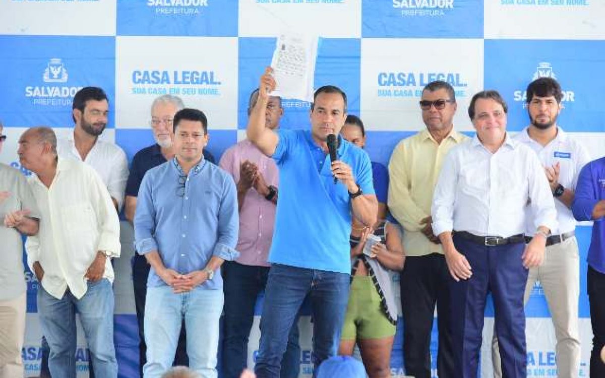 A Prefeitura de Salvador entregou nesta quinta-feira (29) mais 4.978 títulos de propriedade, pelo programa de regularização fundiária Casa Legal, na localidade do Bate Coração, em Paripe. Participaram da solenidade o prefeito Bruno Reis, o secretário municipal de Infraestrutura, Luiz Carlos de Souza, e o desembargador Roberto Maynard Frank, do Tribunal de Justiça da Bahia (TJ-BA), entre outras autoridades.