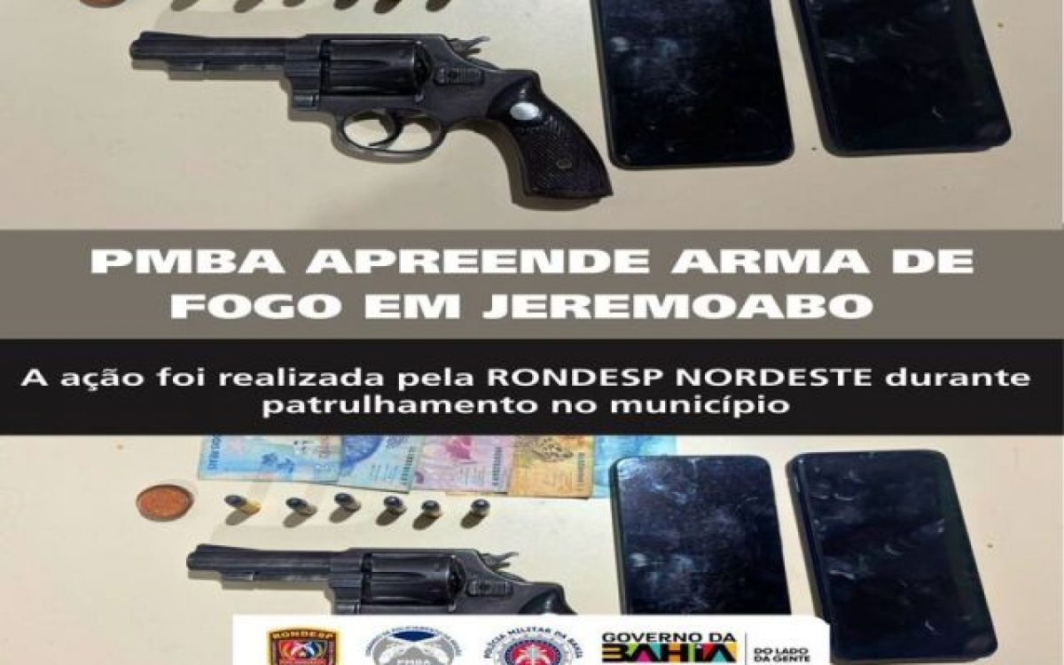 Na noite de sábado (12), por volta das 21h50, uma guarnição da RONDESP Nordeste realizou a prisão de um indivíduo por porte ilegal de arma de fogo no bairro João Paulo II, em Jeremoabo-BA.