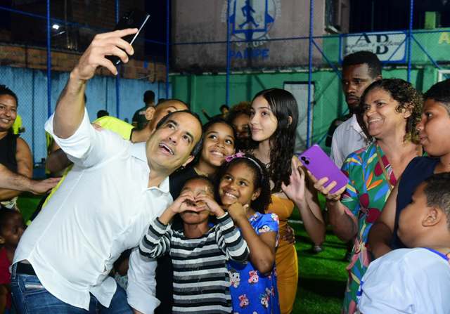 “São todos campos gratuitos, de qualidade, que a comunidade pode usar na hora que quiser e sem pagar nada. A gente implantou esses campos, que são verdadeiras arenas, onde as pessoas podem utilizar de graça, e a única coisa que o prefeito pede é que vocês tomem conta. O recurso é da população, que o prefeito só tem a missão de administrar. E quando vocês tomam conta a gente pode inaugurar outros em outros bairros da cidade”, disse Bruno Reis.