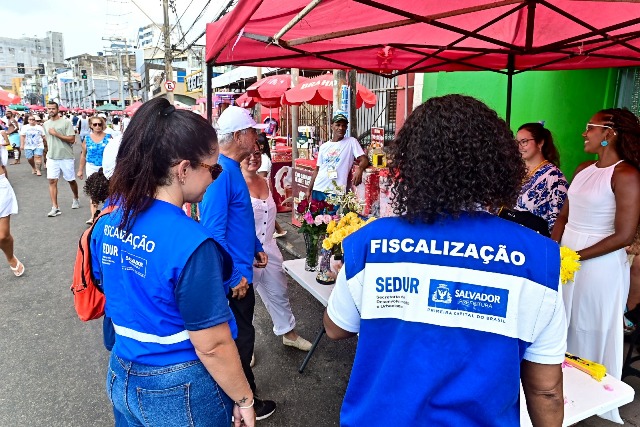 Apreensões – Profissionais da Secretaria Municipal de Ordem Pública (Semop) realizam fiscalizações constantes no perímetro da celebração, garantindo o ordenamento e a retirada de materiais não autorizados do percurso.