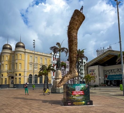 Os atores Vitória Strada e Daniel Rocha protagonizam “Recife Assombrado 2 – A Maldição de Branca Dias”, novo filme de terror brasileiro que estreia nos cinemas na quinta-feira (23 de outubro). Inspirado em lendas e figuras históricas de Pernambuco, o longa marca a continuidade da franquia iniciada em 2019 e aposta em uma ação inusitada para divulgação: uma escultura de 8 metros da Perna Cabeluda, personagem do folclore urbano local, foi instalada no Marco Zero, um dos principais pontos turísticos do centro histórico do Recife.