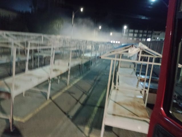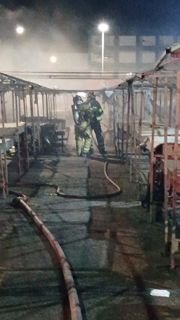 Ao chegarem ao local, as guarnições confirmaram a veracidade da ocorrência e identificaram que as chamas se concentravam principalmente nas lonas que cobriam as barracas de estrutura metálica. De imediato, foi realizada a sinalização da área e iniciado o combate ao incêndio com o emprego de linhas de mangueiras.