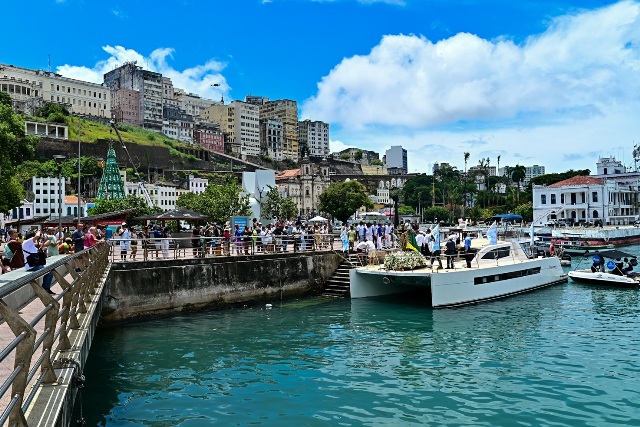 “Nós saímos da Marina na Penha, paramos ali na Igreja da Penha para a celebração da missa, que Padre Edson faz com muito carinho, local onde a imagem chegou em 1745, e dali nós seguimos em procissão marítima até a Barra, retornando até a Rampa do Mercado, onde desembarcamos. O povo aguarda com ansiedade a chegada e leva a imagem até a Conceição da Praia, de onde na quinta-feira ela parte a pé de volta para a Colina Sagrada nos braços do povo”, descreveu.