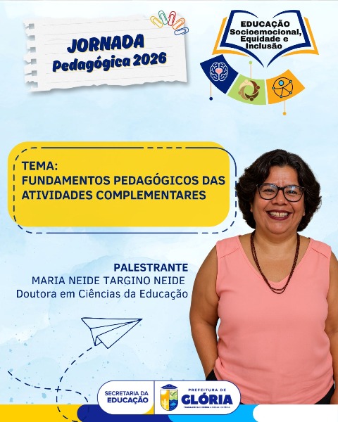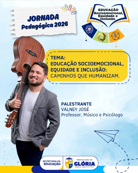 Com o olhar voltado para o futuro das salas de aula e para o cuidado com o ambiente escolar, a Prefeitura de Glória, por meio da Secretaria Municipal de Educação, inicia nesta quarta-feira (28), às 18h, no Espaço Veralu, a Jornada Pedagógica 2026. O evento marca a abertura oficial do ano letivo e reúne profissionais da educação para discutir o tema: “Educação Socioemocional, Equidade e Inclusão:
