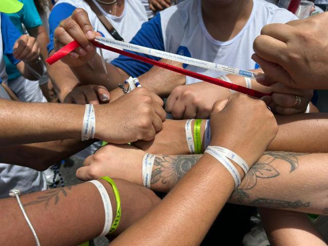 Além das fitinhas especiais, a pasta também está levando ventarolas (abanadores) trazendo informações para as mulheres e com o ‘violentômetro’, além do Botão Lilás, disponível no WhatsApp. “Estamos pedindo a redução do número de feminicídios. Portanto, quem tem fé vai junto pelo fim da violência contra a mulher”, completou Fernanda Cerqueira.