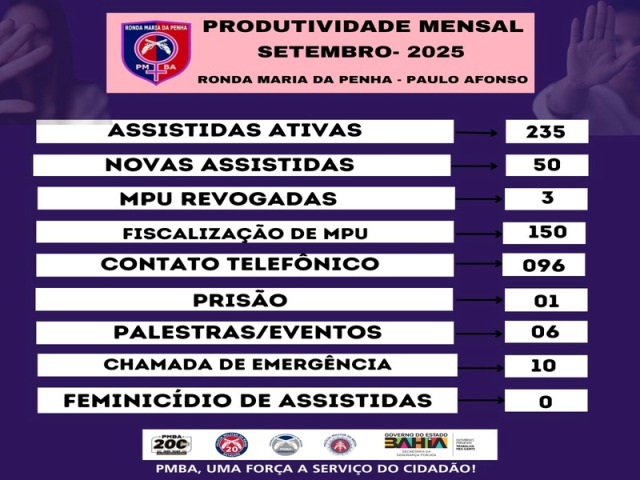 A Operação Ronda Maria da Penha está sediada no 20º Batalhão de Polícia Militar, em Paulo Afonso, e permanece à disposição da comunidade.