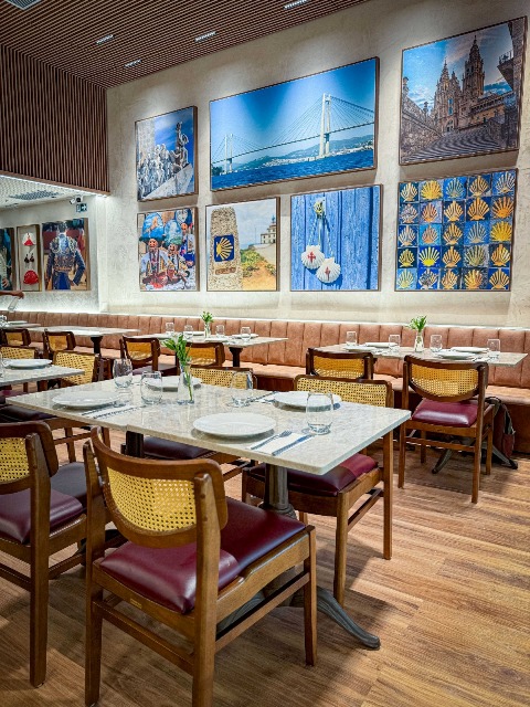 O cardápio vem da cozinha afetiva do empresário Rafael Casqueiro e reúne receitas da clássica culinária Ibérica, destacando pratos à base de frutos do mar. Entre as opções estão uma variedade de sabores, como bolinho de bacalhau, bacalhau Gomes de Sá, Tortilla Española, Pulpo a la Gallega, a Paella Valenciana, que reina no cardápio do Santiago, entre outros.