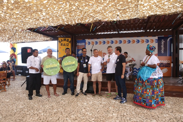 Dois quiosques da nova Orla de Pituaçu receberam neste sábado (14) o Selo Quiosque Sustentável, em ato realizado no Palco Nelson Rufino. Na mesma oportunidade em que as certificações foram entregues aos quiosques Samba Social Clube e Ó Paí Ó, Rufino recebeu novamente uma placa de embaixador do Carnaval Sustentável.